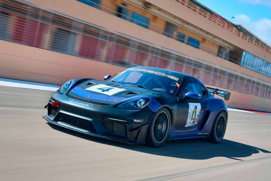 Версия GT4 RS среднемоторного Porsche 718 Cayman специально адаптирована для участия в гонках. Для этого автомобиля можно заказать опциональный каркас безопасности, а 500-сильный двигатель рабочим объемом 4,0 л Taycan получил от старшей модели 911.