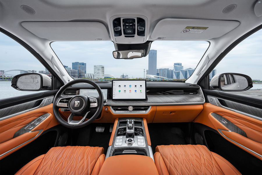 TankПри габаритной длине около 5 метров Tank 500 представлен на китайском рынке в пятиместном и семиместном исполнении. В соответствии с современными трендами в автопроме, комбинация приборов виртуальная, в ее основе – 12,3-дюймовый цветной дисплей.