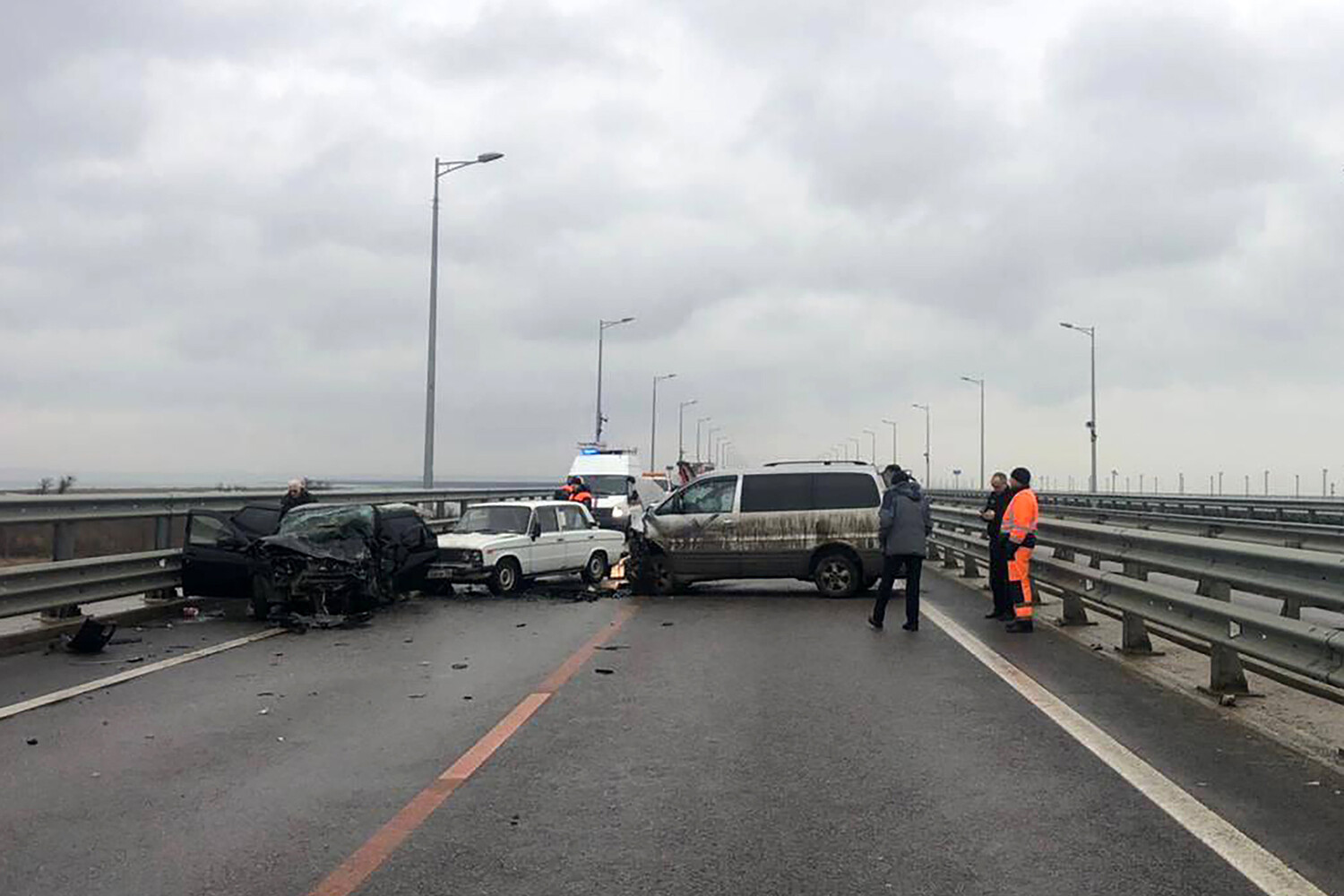 Три легковых автомобиля столкнулись на Крымском мосту по пути в Керчь. Об этом сообщает ТАСС со ссылкой на источник в экстренных службах Крыма.