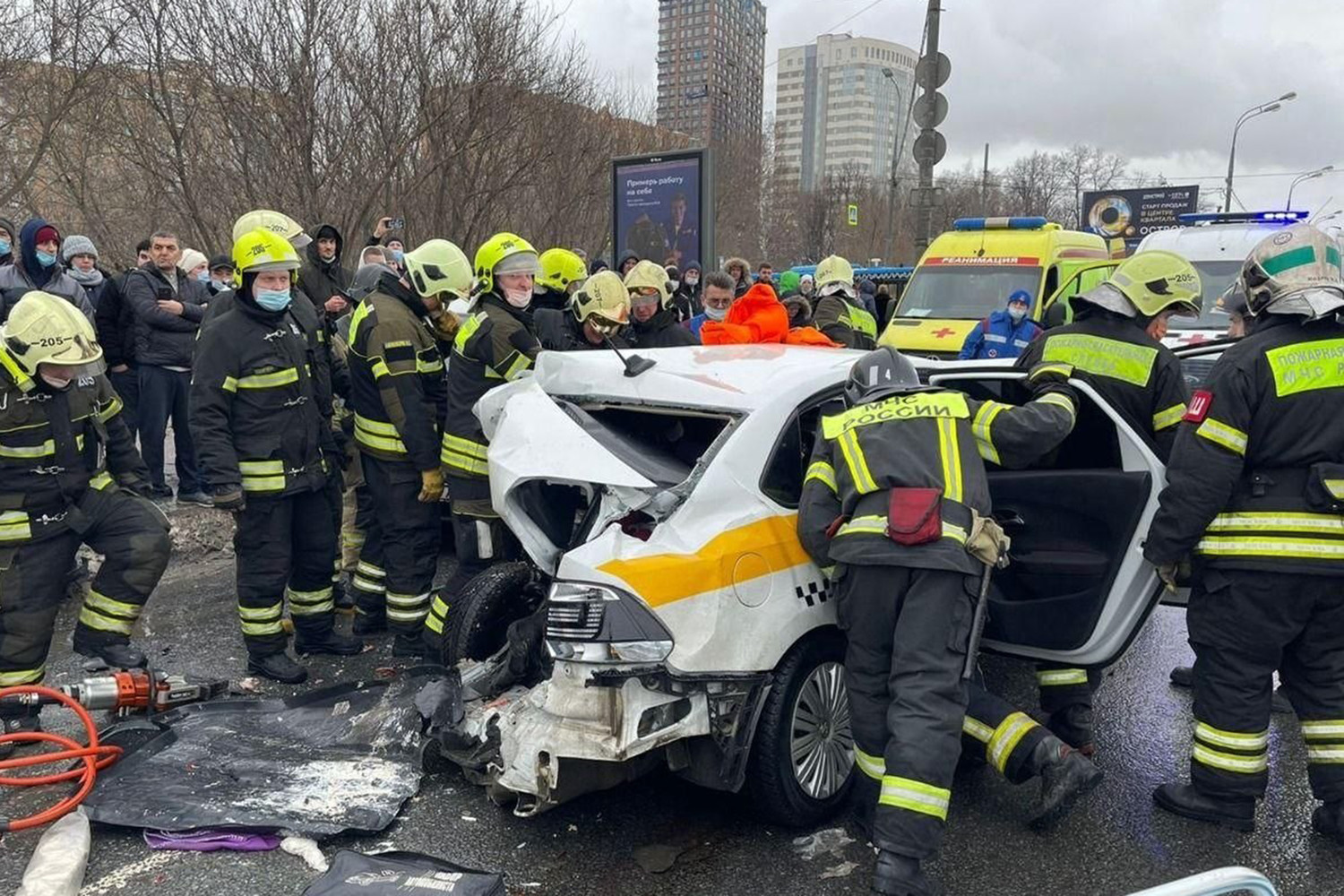 В результате происшествия три человека пострадали, один из них с тяжелыми травмами, передает Госавтоинспекция. По другим данным, пострадало четыре человека, трое зажаты в разбитых машинах. На место ДТП прибыл медицинский вертолет.