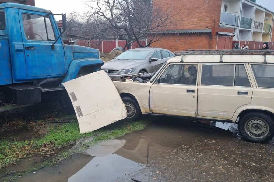 Автомобиль с подростком съехал с проезжей части и врезался в припаркованные на обочине Volkswagen Passat и грузовик ГАЗ.