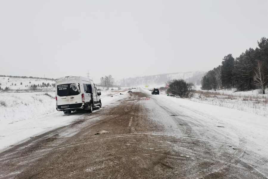 В результате удара маршрутка съехала в кювет. В автобусе находились 16 пассажиров, двое из которых – дети.