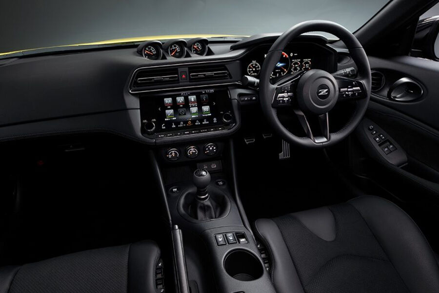 В салоне Nissan Z установлена цифровая приборная панель и мультимедиа-система с 8- или 9-дюймовым экраном в зависимости от комплектации. В список оборудования входят однозонный климат-контроль, передние и задние парктроники и электронные помощники, включая систему автоматического торможения.