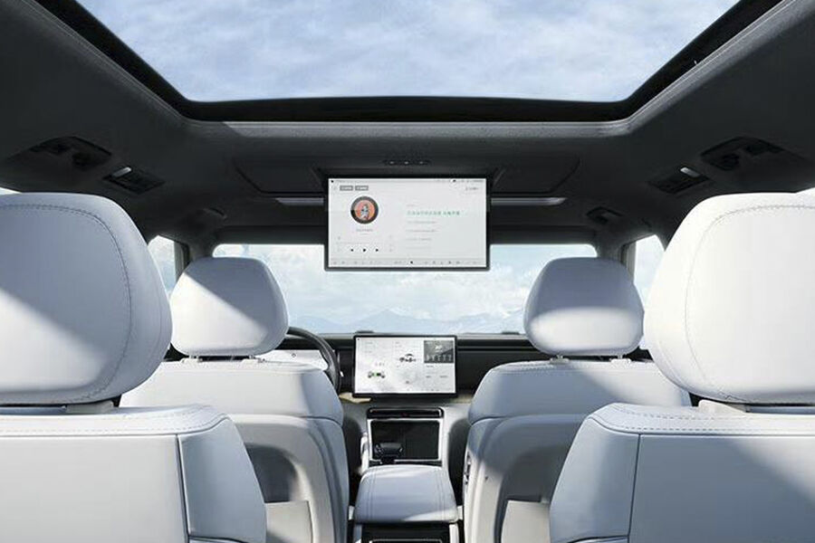 В салоне автомобиля установлен большой «плавающий» центральный экран мультимедиа-системы, две площадки для беспроводной зарядки смартфонов, а также расположенный на потолке экран для пассажиров. Салон может иметь 7- или 6-местную компоновку с двумя «капитанскими» креслами на втором ряду.