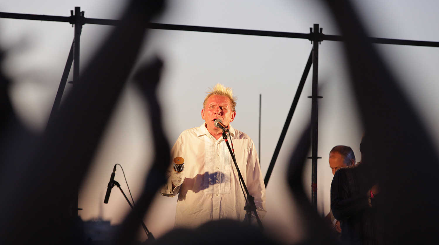 Лидер группы «АукцЫон» Олег Гаркуша во время выступления в Москве, 2014 год