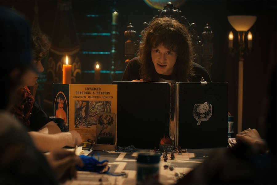 На опубликованных Netflix фото можно увидеть новичков старшей школы Хоукинс: металлиста Эдди Мансона (Джозеф Куинн) и Аргайла (Эдуардо Франко). Мансон станет главой клуба «Адского огня». На снимке он со зловещим видом играет в любимую главными героями настолку «Подземелья и драконы». Аргайл, по информации инсайдеров, будет отвечать за образ «крутого чувака».