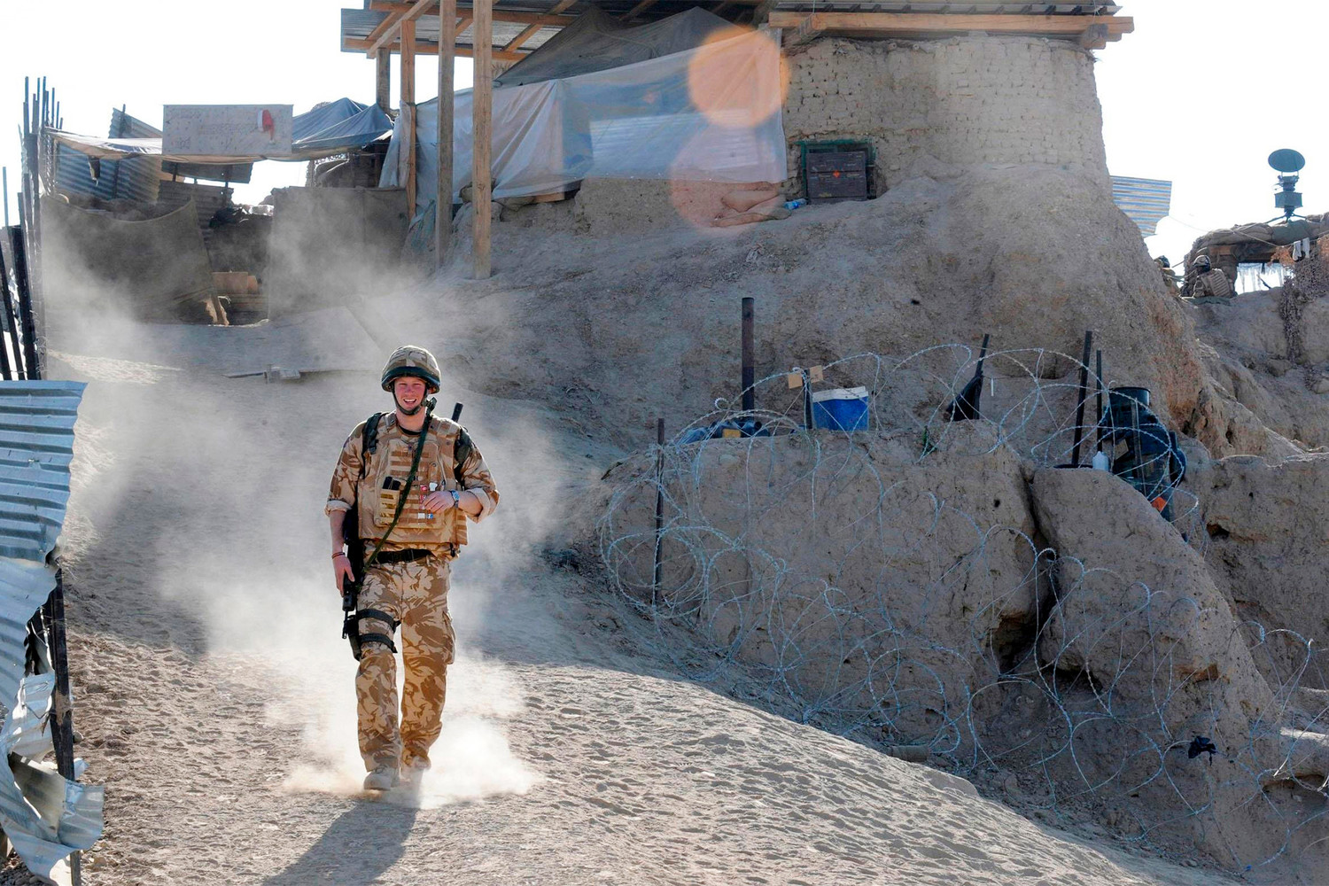 Принц Гарри во время патрулирования заброшенного города Гармисир в Афганистане недалеко от Передовой оперативной базы Дели, 2008 год