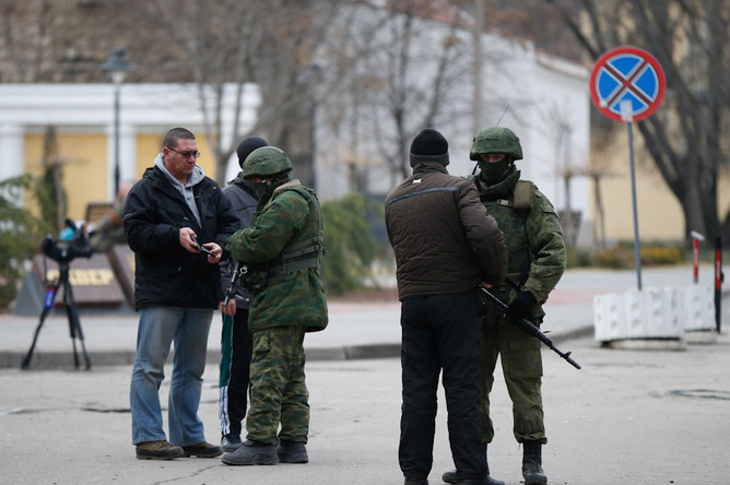 ReutersОколо 50 человек в камуфляжной форме и масках, не похожие на российских военных, захватили здание Дома профсоюзов, сообщает Крымское информационное агентство. «У них нет оружия. Они выбили входную дверь и боковые стекла. Себя люди идентифицируют как представители «Крымского фронта», — сообщает агентство. — В настоящее время входные двери заблокированы изнутри. К месту приехала машина службы госохраны Украины, но, сделав несколько звонков, они уехали. К журналистам вышел представитель захватчиков, который сообщил, что в пресс-центре, расположенном в Доме профсоюзов, в ближайшее время состоится пресс-конференция «Крымского фронта». Дальнейшее общение с журналистами было прекращено».