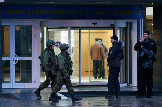 Вооруженные люди у здания аэропорта Симферополя