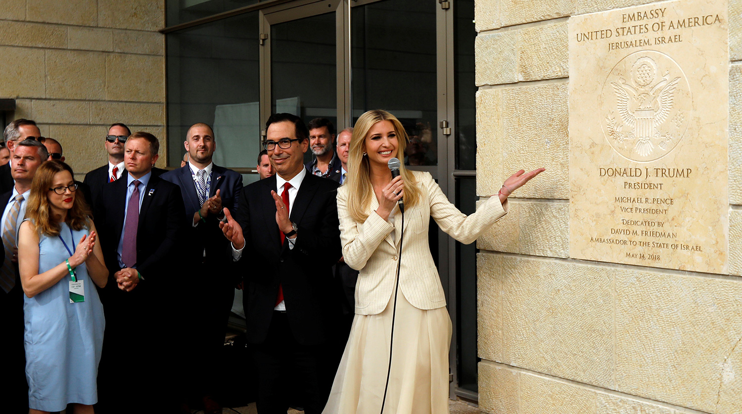 Кушнер снова говорит о том, что решение США о переносе посольства принесет мир в регион. Иванка слушает речь своего мужа, едва сдерживая слезы.