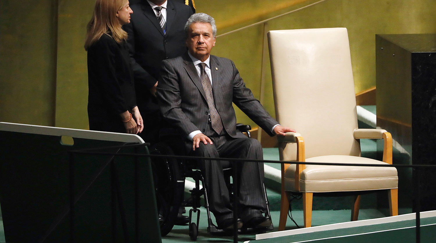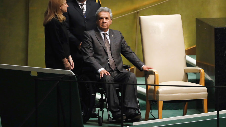 Следующий спикер — президент Эквадора Ленин Мореро Гарсес. Несмотря на то что с 1998 политик прикован к инвалидной коляске, его опыт взаимодействия с ООН достаточно богат. С 2013 по 2017 год Морено занимал пост спецпосланника Генерального секретаря ООН по вопросам инвалидности и доступности.