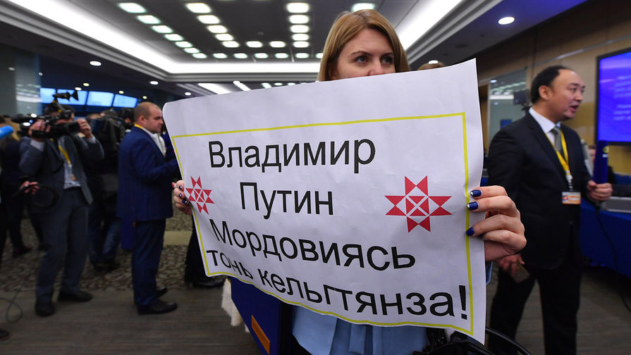 Также есть здесь журналистка с плакатом «Щука Путин». Она полагает, что именно это должен заметить президент. «Решила так внимание обратить», — скромно говорит журналистка