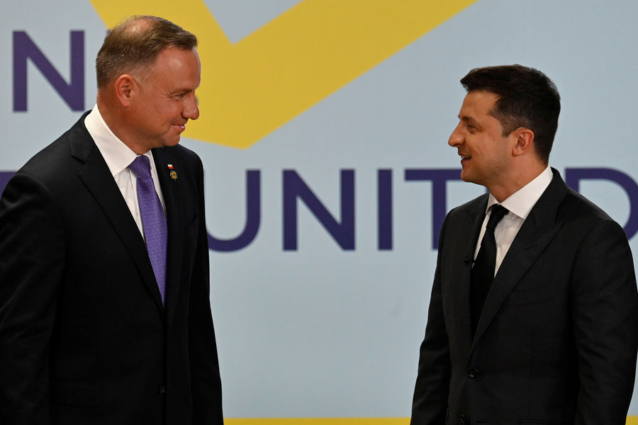 Президент Польши Анджей Дуда и президент Украины Владимир Зеленский во время саммита «Крымская платформа» в Киеве, 23 августа 2021 года