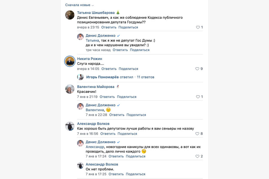 Долженко также ответил на комментарии в социальных сетях, отметив, что депутатов «критикуют часто и за все».