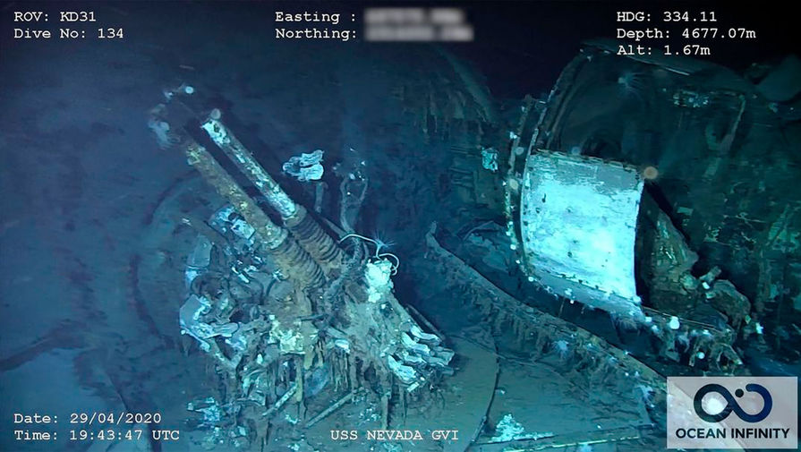 Линкор «Невада» в Тихом океане на глубине около 4,5 км к юго-западу от Перл-Харбора, 2020 год
