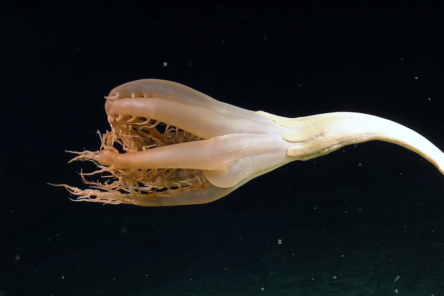 Ученые сняли на видео необычное подводное животное с щупальцами. Об этом сообщает Live Science.