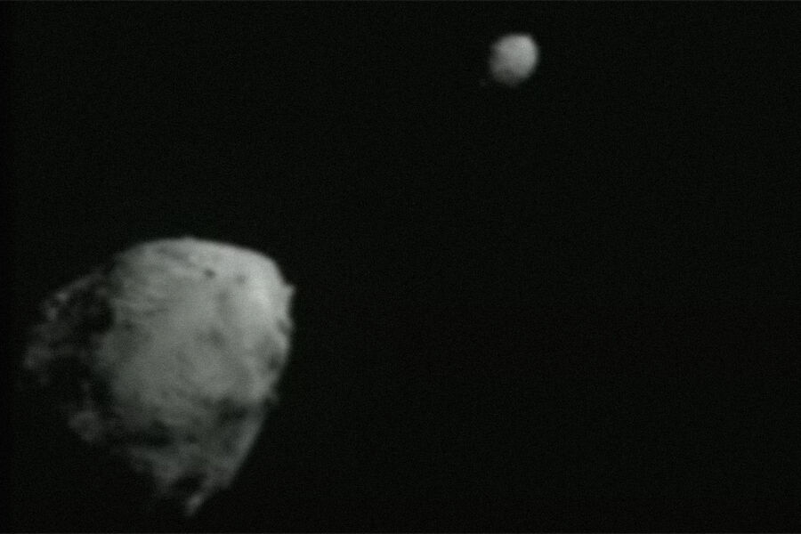 Миссия DART была запущена в ноябре 2021 года чтобы испытать технологию противоастероидной защиты Земли. В ходе нее небольшой космический аппарат вышел на траекторию сближения с околоземным астероидом Дидим (Диаметр 780 метров) и вращающимся вокруг него Диморфом (160 метров). Столкновение произошло с меньшим из них, Диморфом, со скоростью около 6,6 км/с.
