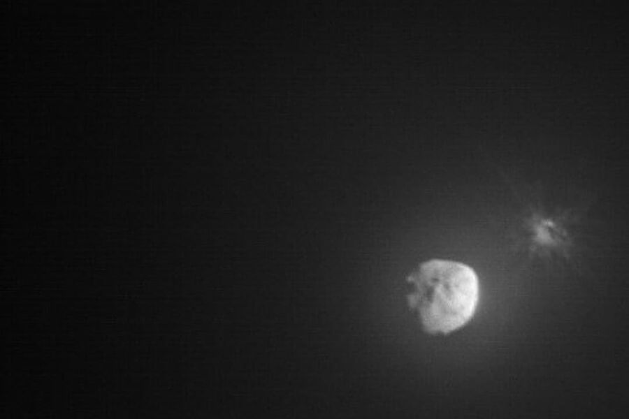 Теперь ученым стали доступны фотографии последствий попадания, снятые камерой кубсата LICIACube с примерно 80 километров. На них виден крупный Дидим и маленький Диморф, вокруг которого витает яркое от солнечного света облако пыли и обломком. Это облако не дает оценить ущерб для самого астероида и изменение его траектории.