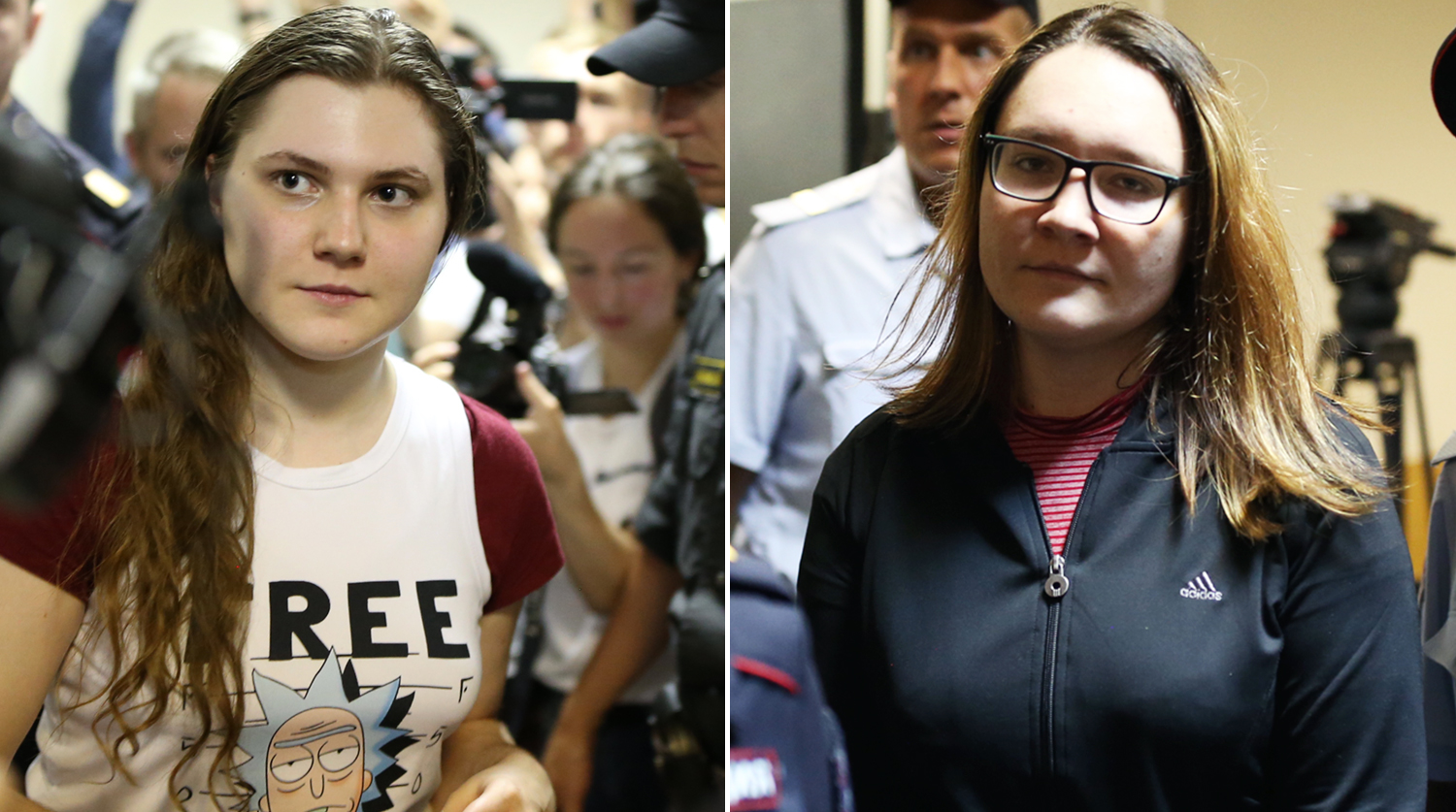Анна Павликова и Мария Дубовик в Дорогомиловском суде города Москвы, 16 августа 2018 года (коллаж)