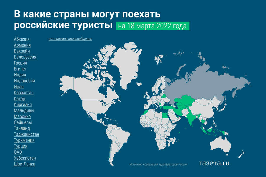 Источник «Газеты.Ru» из туротрасли, в свою очередь, предупредил путешественников, что при планировании зарубежной поездки необходимо учитывать, что сейчас могут быть перебои с возвратными рейсами — с 6 марта 2022 года Россия полностью прекратила международный организованный туризм.