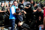 Как сообщают очевидцы, полицейские бросили по крайней мере две светошумовые гранаты для того, чтобы остановить толпу.