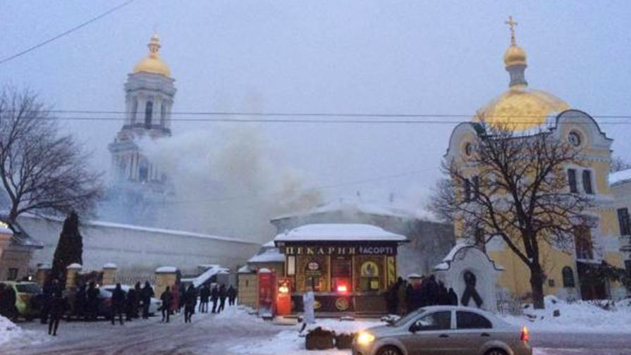 Пожар на территории монастырского комплекса Киево-Печерской лавры произошел вечером 14 января. Из-за огня в здании частично обрушились перекрытия между вторым этажом и чердачным помещением. Возбуждено уголовное дело.