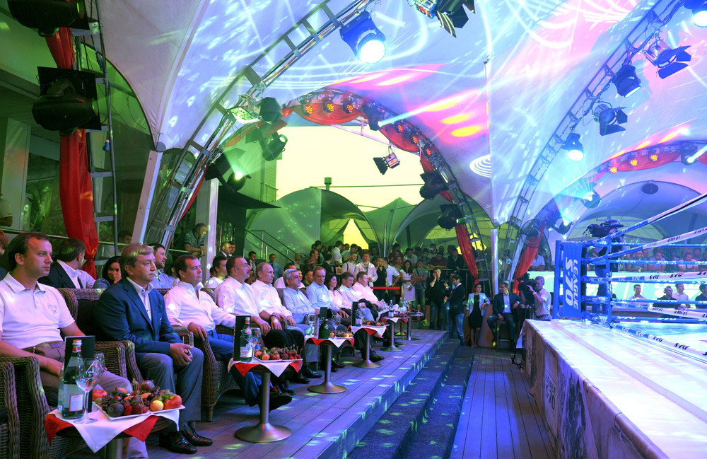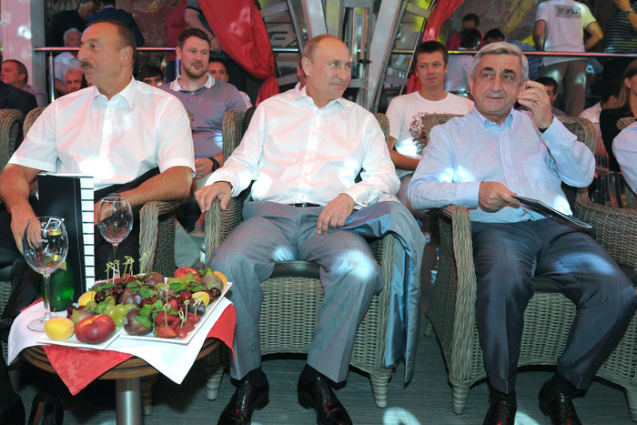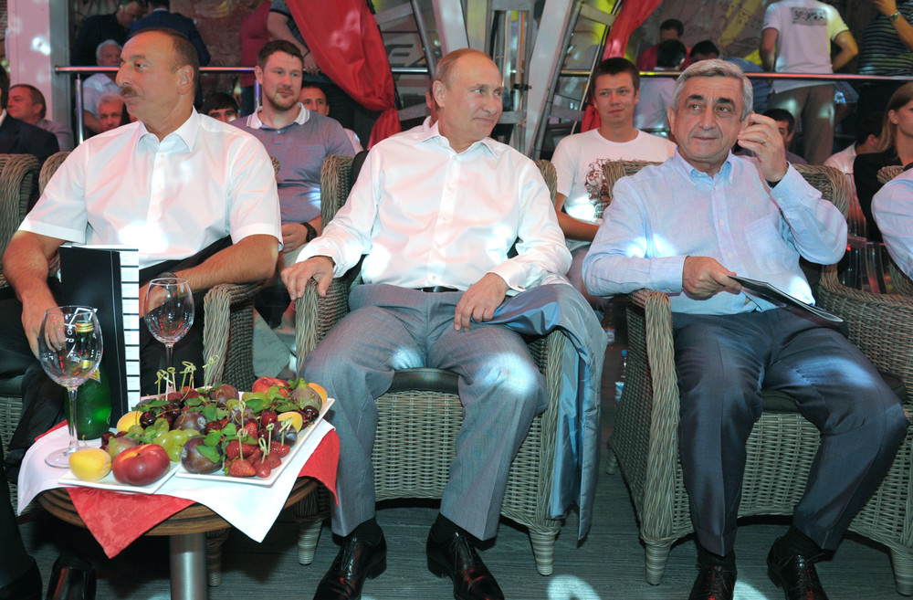 Владимир Путин, Серж Саргсян и Ильхам Алиев входят в арену и занимают свои места. Все высокопоставленные гости прибыли, не хватает разве что министра спорта Виталия Мутко и мэра Москвы Сергея Собянина. Тем не менее, пятый турнир «Плотформа S-70» стал рекордным по количеству почетных зрителей.