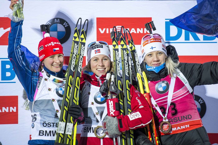 Вот это да! Семеренко и Вирер убежали от Домрачевой, а ведь там было не так много между ними, и разыграли между собой второе-третье место. Украинка в итоге вторая, итальянка третья.