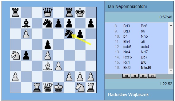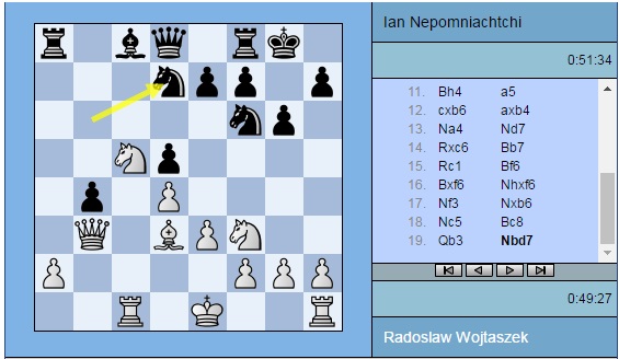 Наверное, самое интригующее положение на доске сейчас в поединке Радослав Войташек (Польша) – Ян Непомнящий (Россия). И тут белые владеют инициативой.