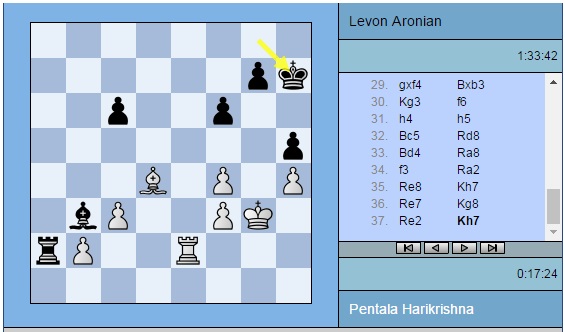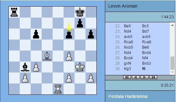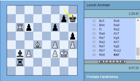 Ожидают наблюдатели и ничьей в партии Пентала Харикришна (Индия) – Левон Аронян (Армения). И там довольно мало времени у белых, пусть и преимущество у них.