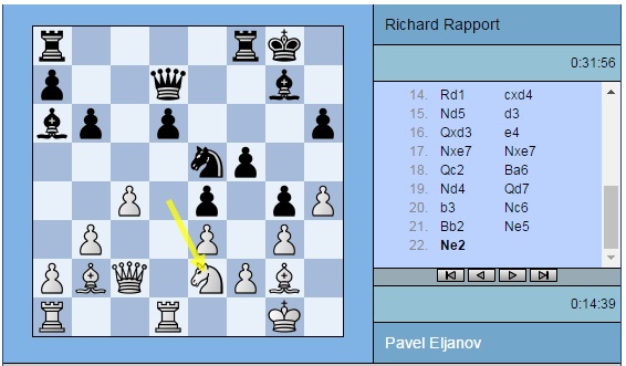 Азербайджанский гроссмейстер Теймур Раджабов считает, что интереснее всего наблюдать за противостояниями Павел Эльянов (Украина) – Рихард Раппорт (Венгрия) и Радослав Войташек (Польша) – Ян Непомнящий (Россия). Давайте тогда посмотрим, что во второй из них.