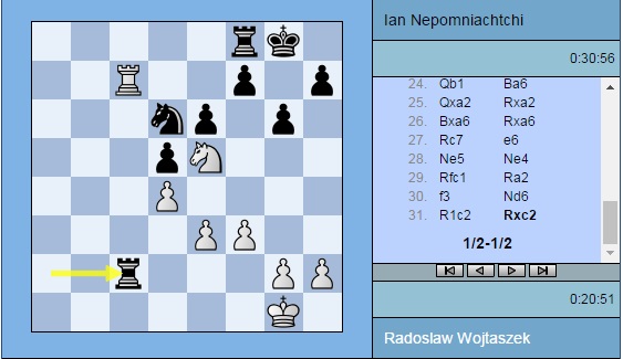 И еще одна ничья в первом туре. Радослав Войташек (Польша) и Ян Непомнящий (Россия) разошлись миром.