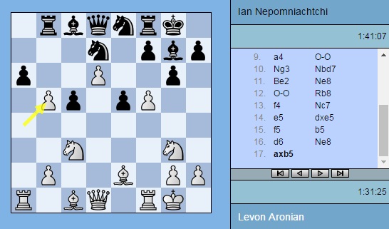 Аронян двинул пешку на d6, а затем предложил размен пешек на ферзевом фланге.