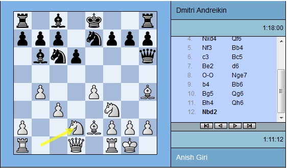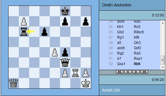 Стремительно развиваются события в партии Гири — Андрейкин. Комментаторы считают, что голландец уже дожимает оппонента, но Сейраван не считает его победу столь очевидной.