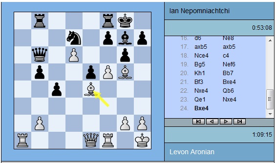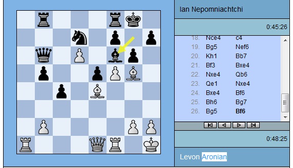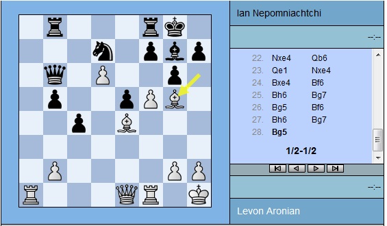 Ничья после повторения ходов в партии Левон Аронян — Ян Непомнящий.