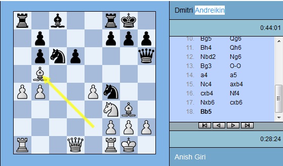 Гири пытается внести смуту в позицию черных в противостоянии с Андрейкиным, но комментаторы предрекают 10-ю подряд ничью для голландского гроссмейстера.