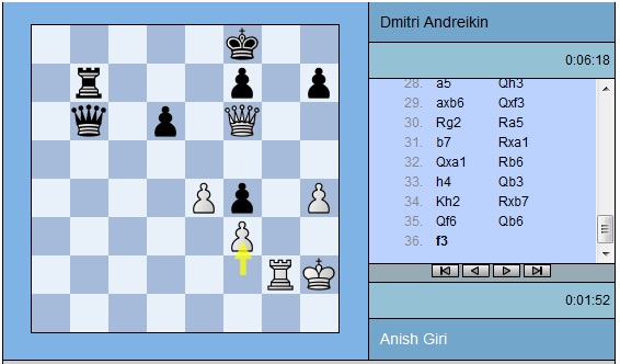 Драматическая развязка в партии Гири — Андрейкин. Выигрышная позиция у Аниша, но времени все меньше.