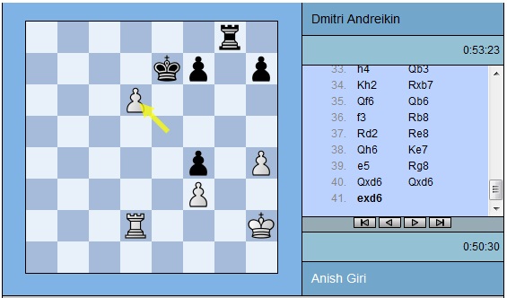 Прошли контроль времени Гири и Андрейкин. И тут размен ферзей.