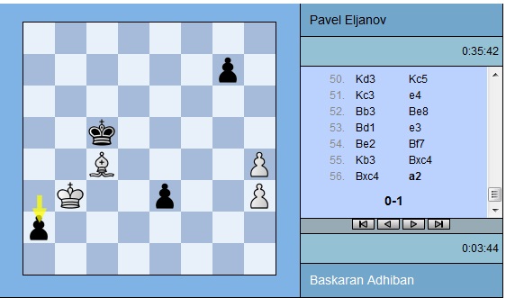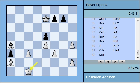 И эта победа состоялась! Эльянов черными выиграл у Адхибана и остается единоличным лидером турнира!