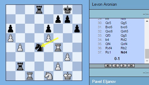 Ход Эльянова 37. Лс1 стал роковым. После ответа черных 37. ... Кd4 от вилки на е2 защиты нет, и украинец неизбежно проигрывает качество.