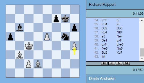 У Андрейкина с Раппортом примерно равное положение, но у россиянина небольшое преимущество двух слонов и больше пространства для маневров.