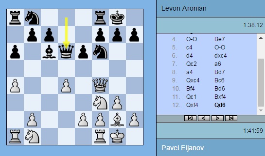 Ельянов и Аронян, по мнению гроссмейстера Робина ван Кампена, разыграли наиболее спокойный дебют из всех и достаточно быстро перешли в миттельшпиль.