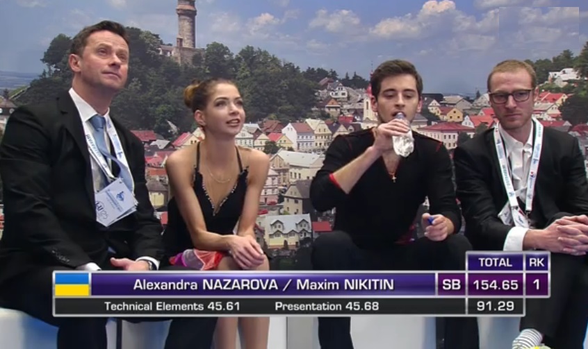 Стартовали соревнования, и уже есть первый результат: Виктория Ковалева и Юрий Беляев из Белоруссии открыли программу дня, завершив свое выступление в Остраве с результатом 125,42 балла.