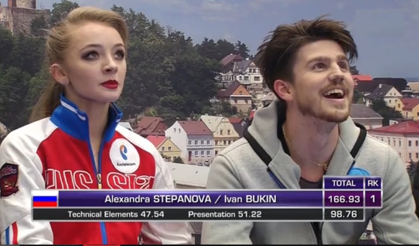 94.66 балла за произвольную программу набирают датчане. 160.68 у них в сумме. И... второе место!! Степанова и Букин остаются в лидерах.