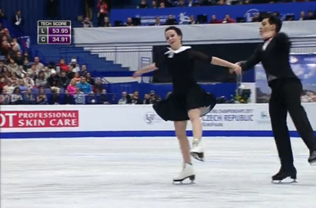 Тина Гарабедян и Симон Прулкс-Сенекал на льду. Спортсмены представляют Армени. После короткой программы они занимали 16-е место.