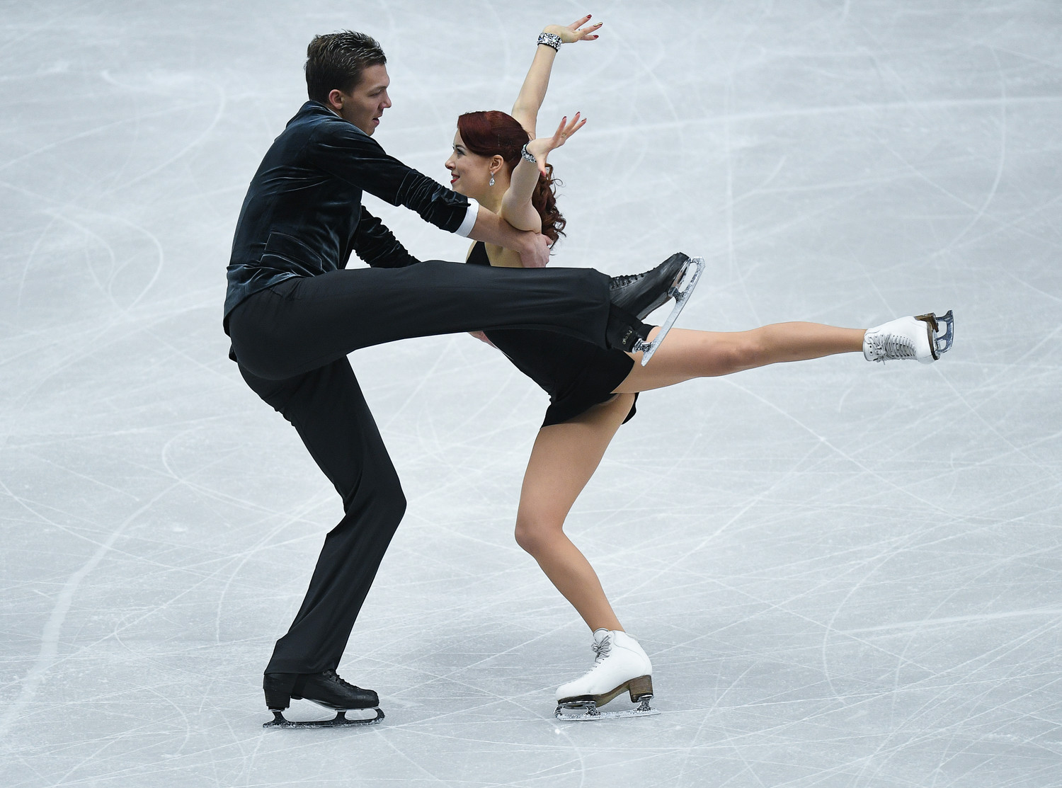 На льду Наталия Калишек и Максим Сподырев из Польши. Пока они идут на десятом предварительном месте.