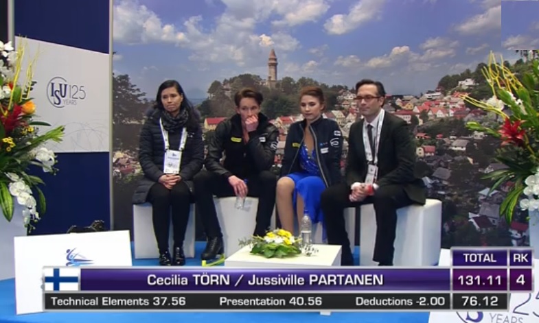 Следующими выступают Сесилиа Терн и Юсивилле Партанен из Финляндии. После короткой программы они занимали 14-е место.
