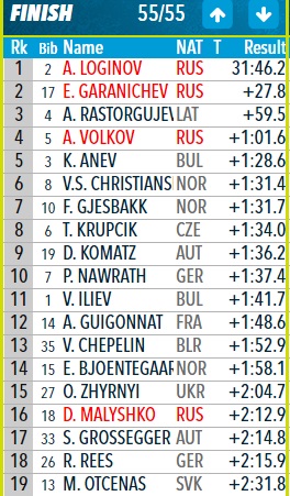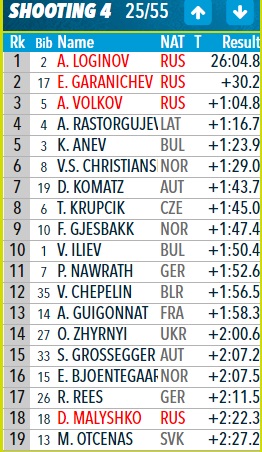 Поздравляем сегодняшних призеров! Уже ни у кого не возникает сомнений, что своими успехами Логинов заслужил место в сборной России на чемпионате мира. Будет надеяться, что в Хохфильцене наш спортсмен сможет выступить на таком же высоком уровне.