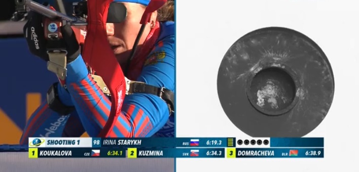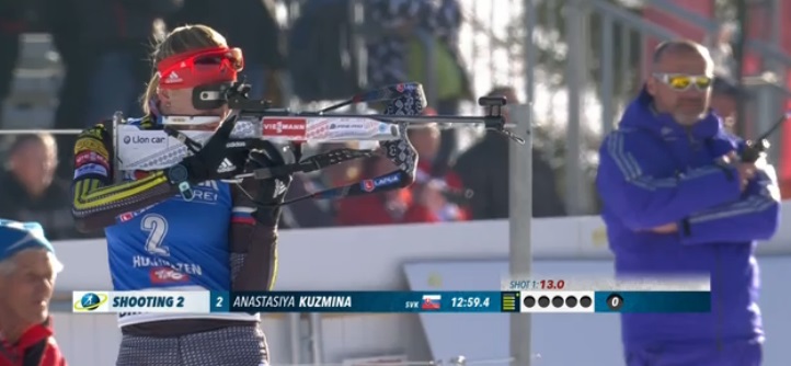 На второй стрельбе — из положения стоя — у Кузьминой один промах.