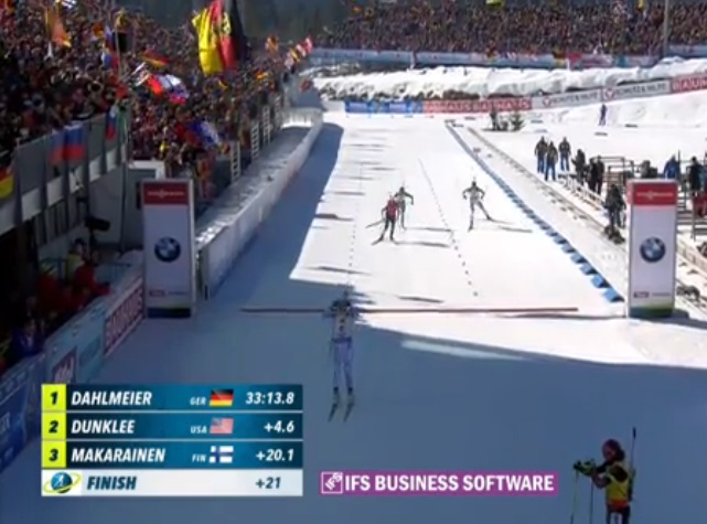 И все! Финиширует Дальмайер! Вот это да! Просто гениальная спортсменка!